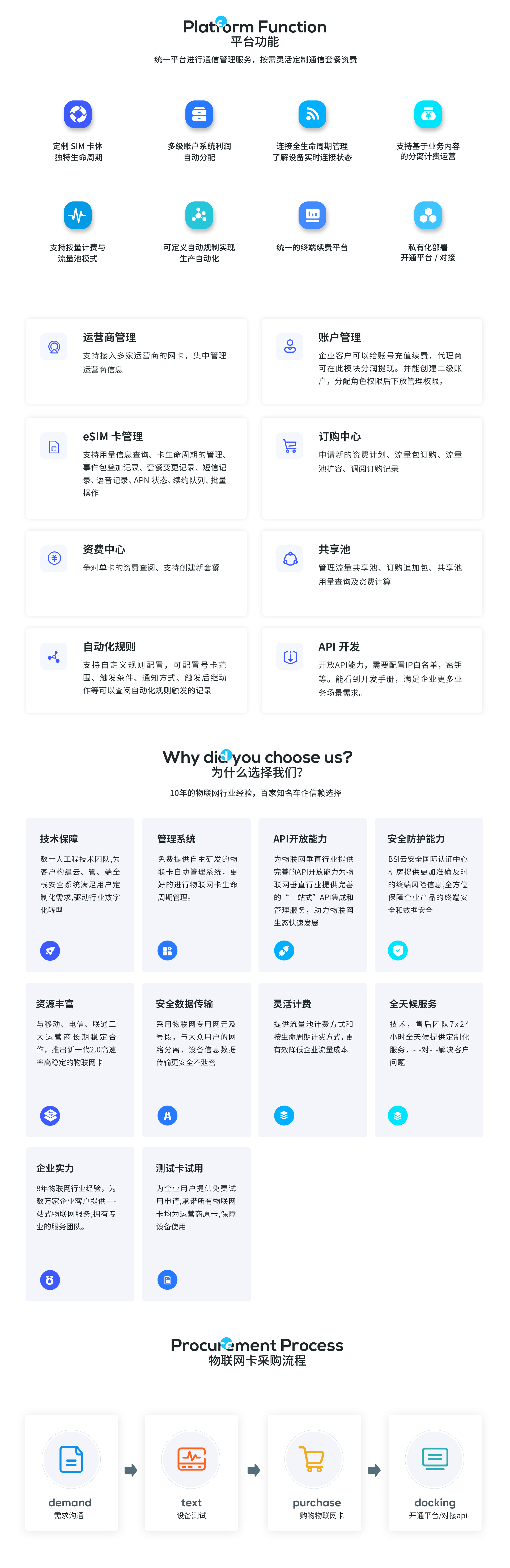 斯?jié)櫮軌蛱峁幕A物聯(lián)網(wǎng)卡、流量卡的定制,到供應物聯(lián)網(wǎng)網(wǎng)聯(lián)設備,到eSIM卡Saas管理平臺的搭建,到行業(yè)終端產(chǎn)品化研發(fā),以及物聯(lián)網(wǎng)綜合解決方案,為企業(yè)提供一站式物聯(lián)網(wǎng)卡運營管理服務。