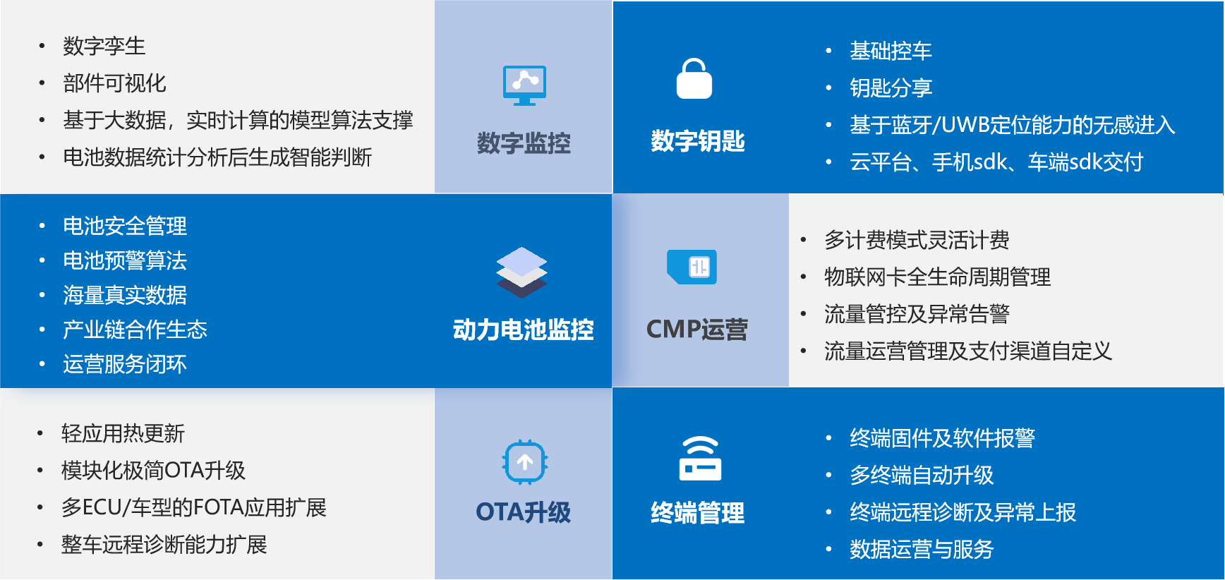 這次獲獎(jiǎng)的「智能網(wǎng)聯(lián)云邊協(xié)同開放創(chuàng)新平臺(tái)」是斯?jié)櫶炖蚀蛟斓?/span>汽車智能網(wǎng)聯(lián)及應(yīng)用服務(wù)聚合平臺(tái),通過五個(gè)標(biāo)準(zhǔn)化技術(shù)體系——接入、協(xié)議、數(shù)據(jù)、應(yīng)用、服務(wù),以及大數(shù)據(jù)底座,構(gòu)建了200+ For Car組件化服務(wù)。平臺(tái)致力于為用戶提供包括監(jiān)控應(yīng)用、動(dòng)力電池監(jiān)控、數(shù)字鑰匙、終端管理、OTA、CMP運(yùn)營(yíng)等多維度服務(wù),支持多種終端集成,保證上層應(yīng)用可以根據(jù)車輛、終端、BMS整車單元需求進(jìn)行服務(wù)擴(kuò)展。