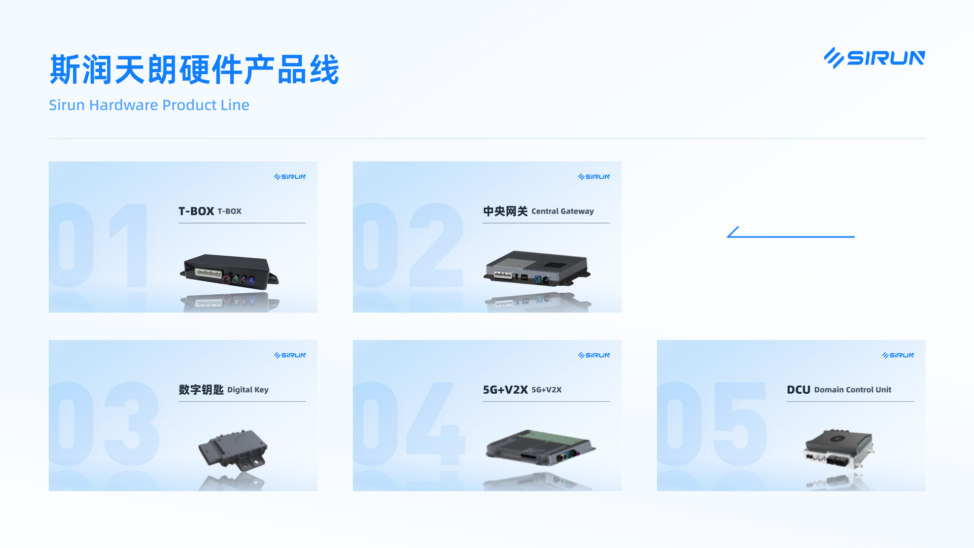 作為國內(nèi)領(lǐng)先的智能網(wǎng)聯(lián)數(shù)字化運營服務(wù)商,斯?jié)櫶炖书L期專注于車車、車云、車路產(chǎn)品化領(lǐng)域的研發(fā)與商業(yè)化落地,構(gòu)建了包括汽車連接開放平臺(OPEN-TSP)、車路協(xié)同運營平臺(V2XLink)、大數(shù)據(jù)AI處理平臺(SADT)三大云端基線產(chǎn)品以及車載通訊終端(4G/5GT-BOX)、中央網(wǎng)關(guān)(Gateway)、數(shù)字鑰匙(DigitalKey)、V2X終端(V-BOX)、車身域控(DCU)五大智能終端產(chǎn)品。