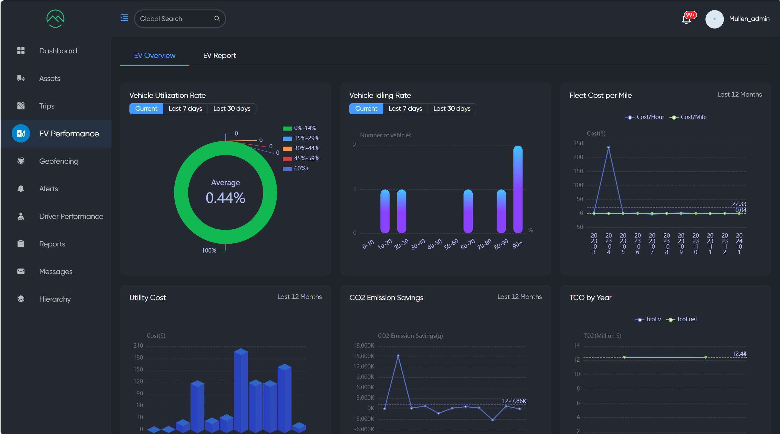 Web端功能提供了一系列強大的監(jiān)控和管理工具,包括實時監(jiān)控大屏、EV信息概覽和報告、電子圍欄、報警系統(tǒng)等,幫助用戶全面了解和掌握車隊的狀態(tài)、位置和性能,提高管理效率。此外,還有司機(jī)表現(xiàn)、司機(jī)管理、統(tǒng)計報告等工具,使得車隊管理更加便捷和高效。