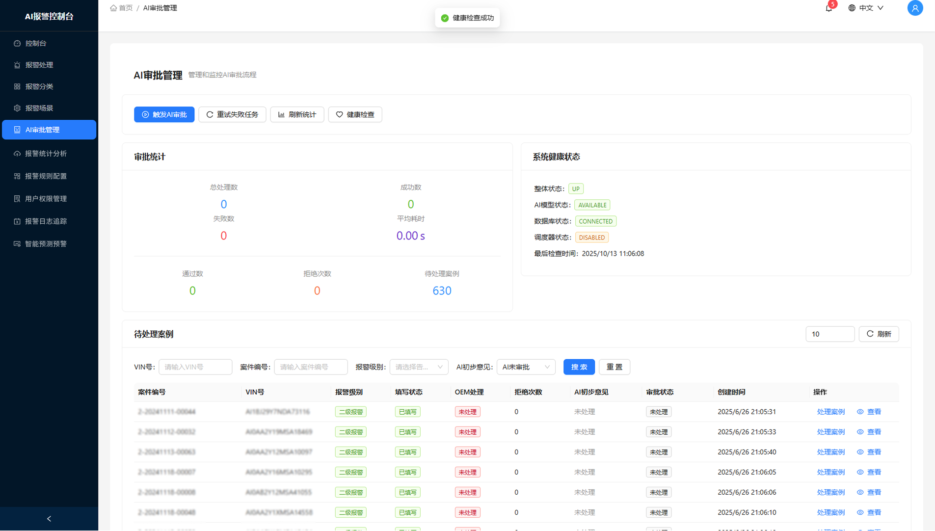 專注于AI審批流程的監(jiān)控與管理,支持任務(wù)觸發(fā)、狀態(tài)查看與健康檢查,并提供待處理案例的搜索與處理功能,保障AI審批流程的穩(wěn)定與高效。